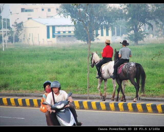 在我們要下四草大橋的時候 還看到有人騎馬耶