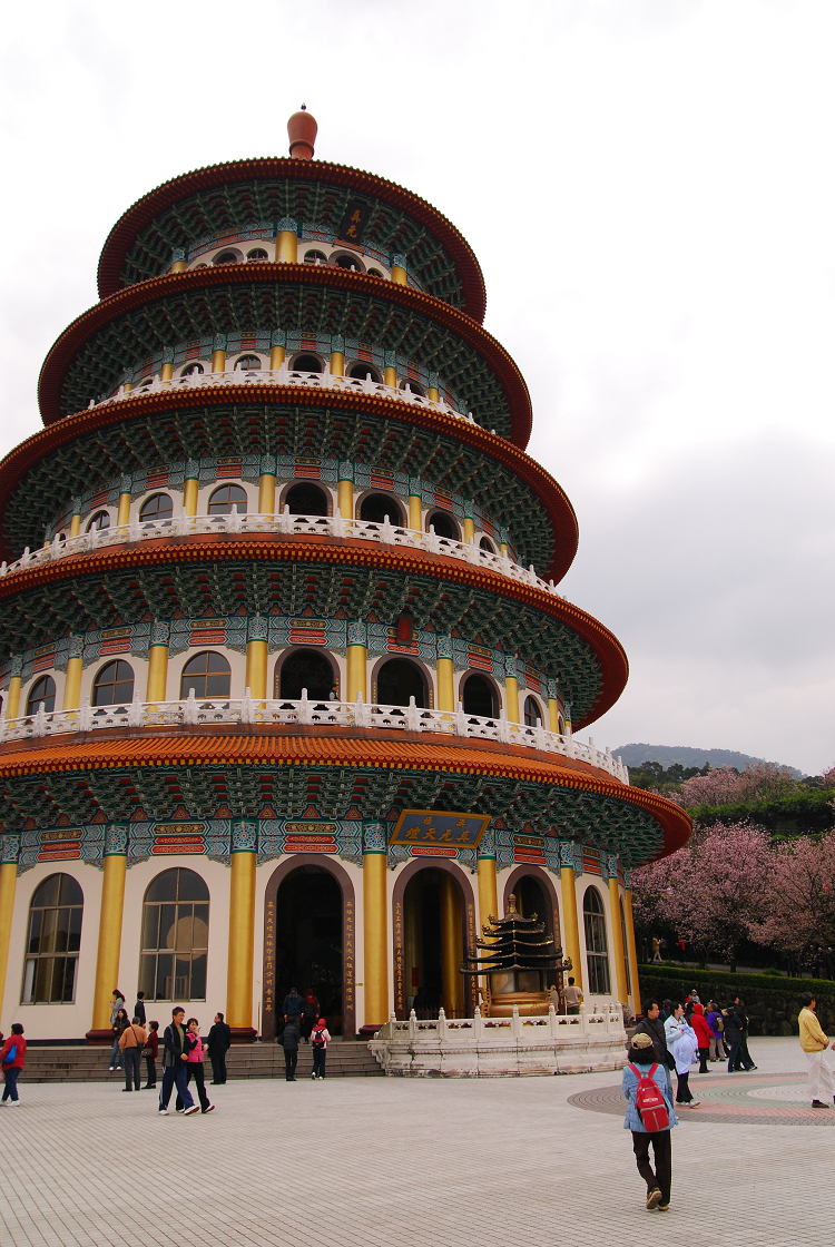 到了天元宮,才發現其實它比我想像中的小,但是依天元宮周圍而種的櫻花樹,倒是開的非常的漂亮,但也看得出來前一天的雨,
