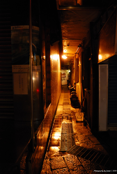 在入夜後老街的巷弄裡,讓孤單的旅人更顯得寂寞!