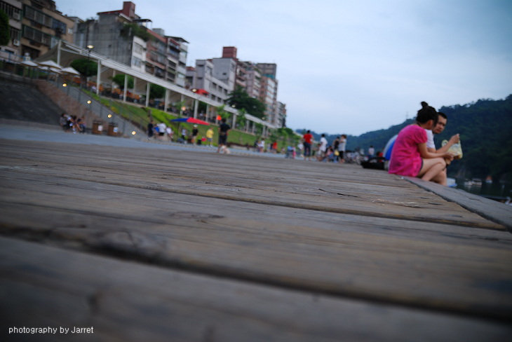 離傍晚近一點時,碧潭畔出現了許多情侶和小家庭帶孩子出來遊玩