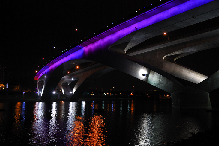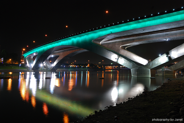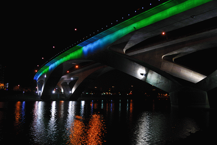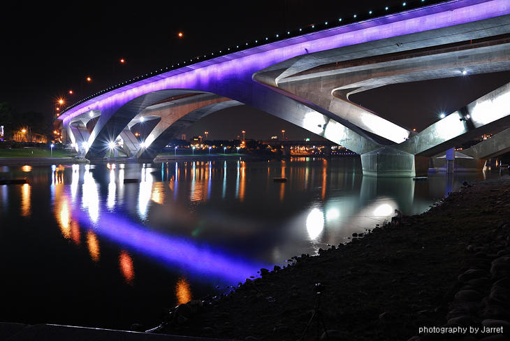 北二高的橋身搭上變色的燈影