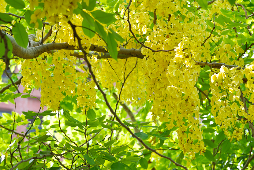 高雄文化中心旁的路樹 阿勃勒在九月再度開花