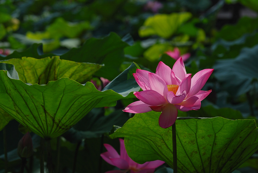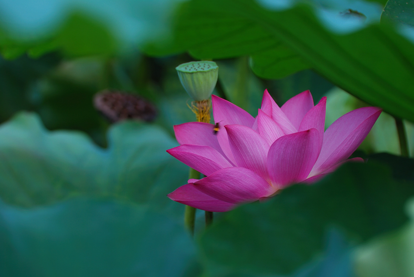 台北植物園六點的早晨 晨綠中襯出荷花的身影 美麗卻很寧靜