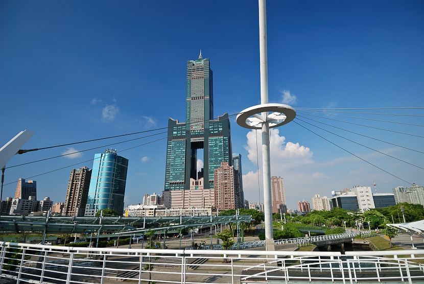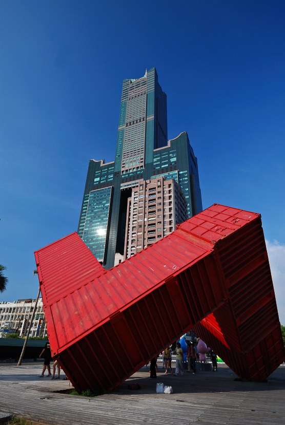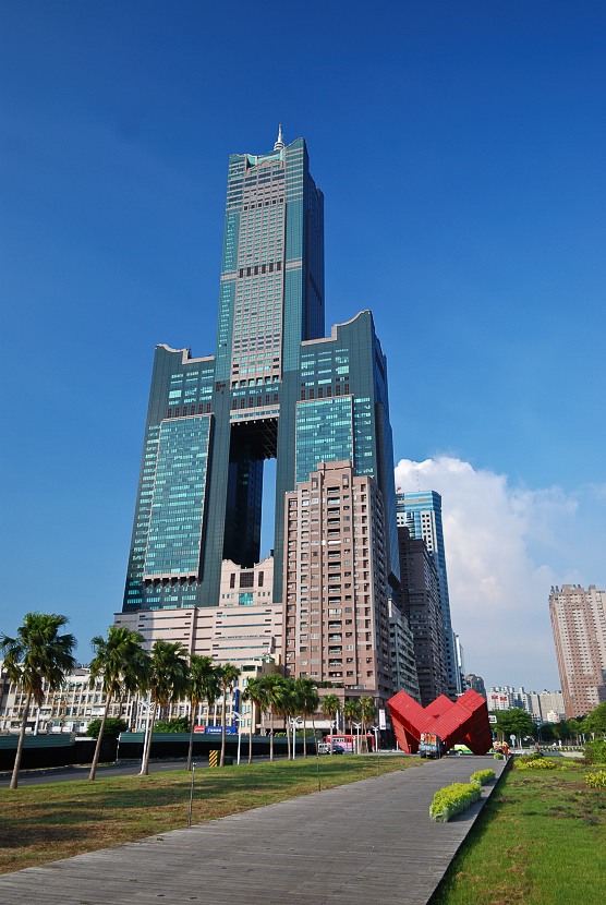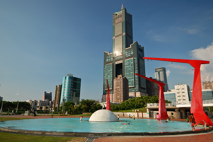 藍天與85大樓和戲水的孩子 永遠是這城市無限的希望