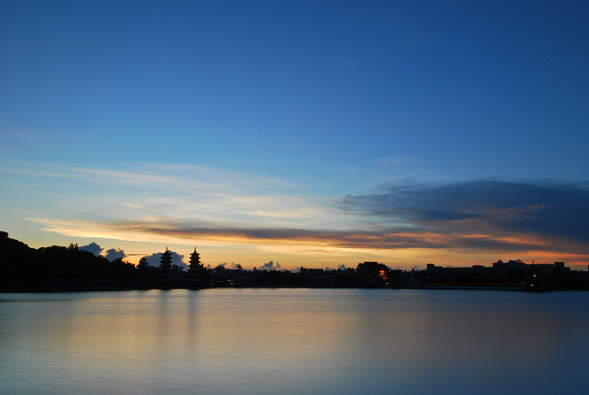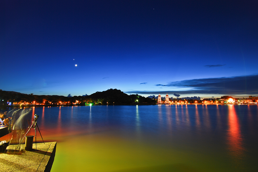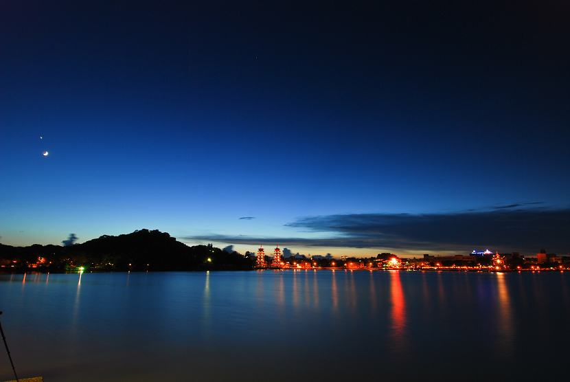 雖然沒有出景 但我卻發現路燈打到湖面 呈現出另一種多層次的顏色