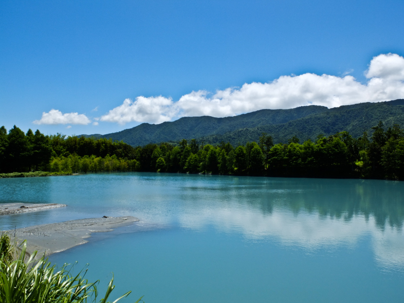 天氣好的時候 雪白的雲朵跟水面的倒影
