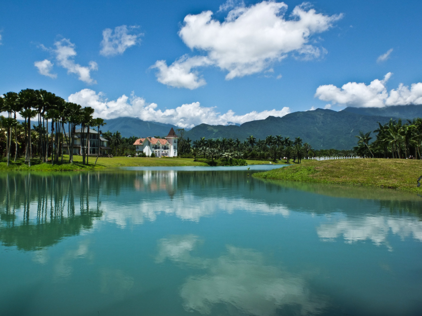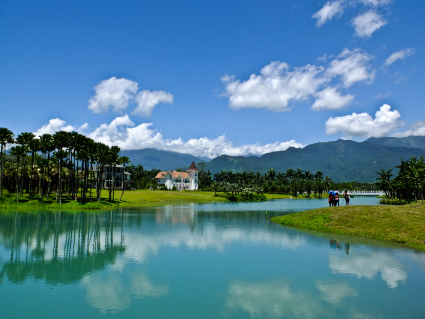 湖畔歐式的villa跟躺椅 誰也想不到花蓮台11線上有這樣的美景
