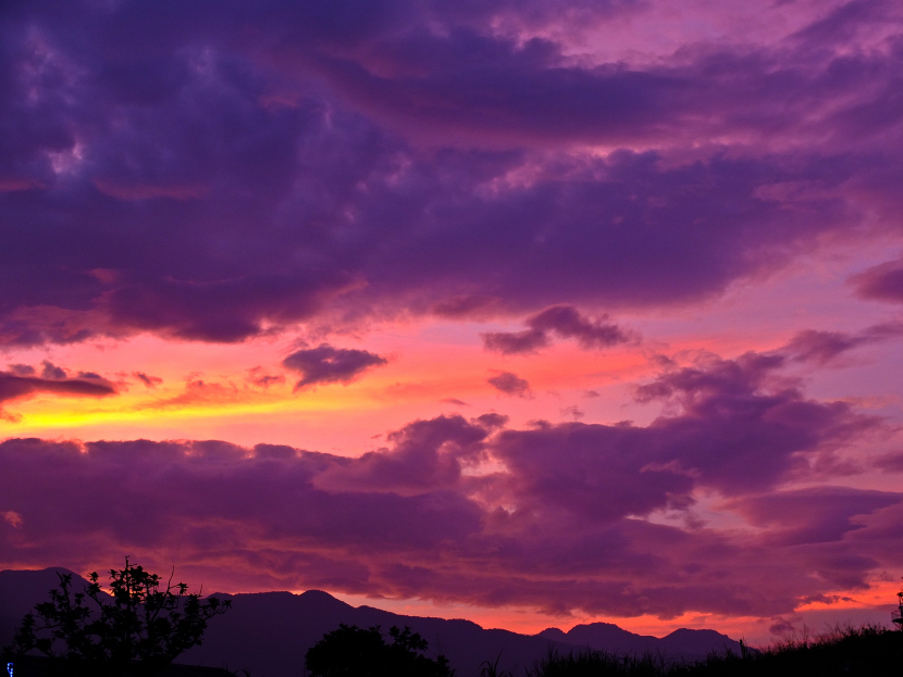 紅紫色的天空 像似旅人內心的背景